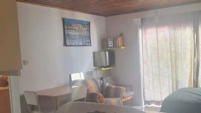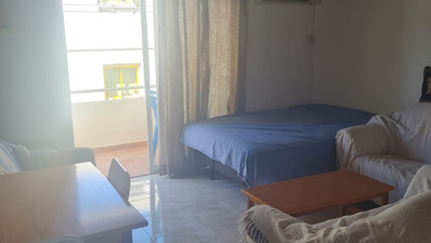 Apartment for Sale in Oroklini area, Larnaca. The property is fully furnished and consists of an open plan kitchen, living and dining area, A/C, electrical appliances, one bedroom, one bath, 1wc and a covered veranda.