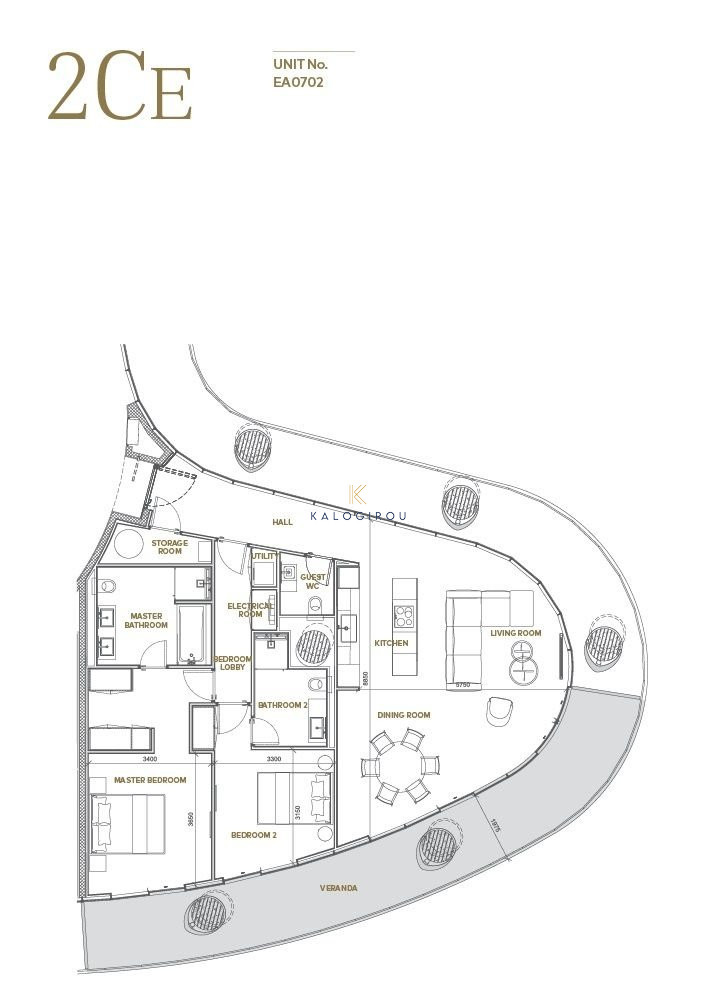 Apartment for sale in Agia Napa. The property consists of an open plan kitchen living and dining area, two spacious bedrooms, each bedroom has its own en-suite, one guest WC, utility and electrical room, a storage room. It has internal covered area of 157 sq m, offering 34. sq. m of covered veranda, covered parking, common swimming pool and common gym and spa.