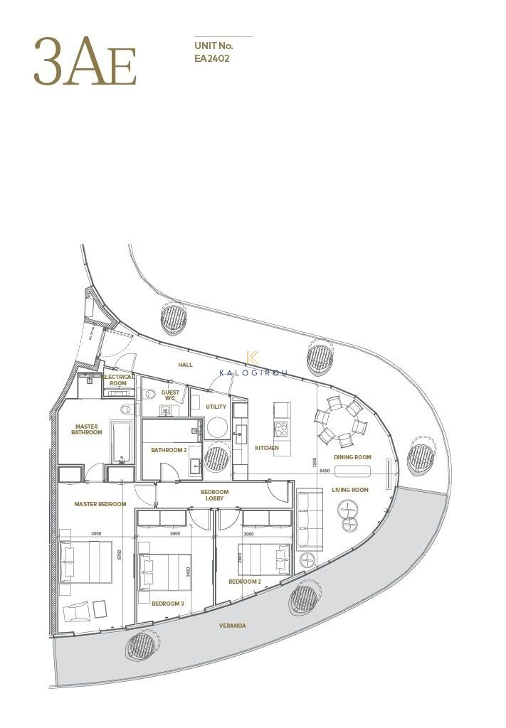 Apartment for sale in Agia Napa. The property consists of an open plan kitchen living and dining area, two spacious bedrooms, each bedroom has its own en-suite, one guest WC, utility and electrical room, a storage room, 34. Sq. m of covered veranda, covered parking, common swimming pool and common gym and spa.