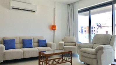 Apartment with Roof Garden for sale in Larnaca Center. The property consists of 2 bedrooms, roof garden, open plan kitchen, lounge, diner, 1 bath, 1 shower, 2wc, full A/C, under floor heating, covered parking, covered veranda, storage room, fully furnished, kitchen appliances.