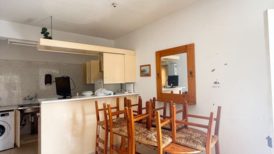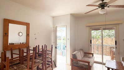 Apartment for rent in Oroklini, Larnaca. The property is fully furnished and consists of an open plan kitchen, living and dining area, A/C, kitchen appliances, two bedrooms, 1 bathroom, 1wc and veranda with barbeque and sea side view.