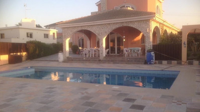 Four-bedroom house for sale in Deryneia area, Famagusta. The property consists of a separate kitchen, living room, dining room, four bedrooms, one shower, 2 bathrooms, 3wc and 2 covered parking. The property also has a swimming pool and beautiful garden.