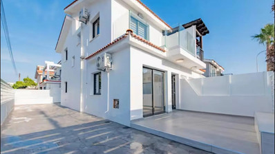 House for sale in Larnaca, Dekeleia area. The property is a semidetached two storey house. On the ground floor consists of an open plan kitchen with high-standard cabinets, living/dining area and a guest toilet. On the first floor consists of three bedrooms the master en-suite and one main bathroom. Externally has large covered & uncovered verandas and beautiful garden. On the ground floor enjoys the right of use private covered parking space and storage room. The house also offers features like photovoltaic panels, high quality ceramic flooring and security door and intercom system.