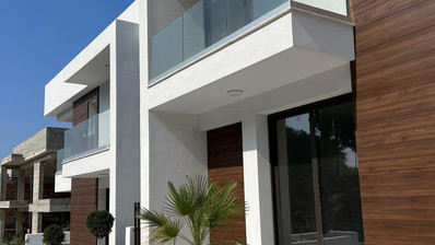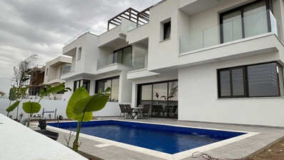 Double Storey Semi-Detached House for sale in Larnaca, Pyla area. The house has internal covered area of 220 sq m approx. in a plot of 324 sq. m. On the ground floor it consists of an open plan kitchen, dining area and living room, a guest wc and covered veranda of 20.65sq m. On the first floor it consists of 3 bedrooms, all of them en-suite with shower and wc. On the top there is a beautiful roof garden of 60 sq m with fantastic view. Externally there is green area and private swimming pool.