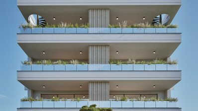 This lovely and contemporary project composed of two four-storey blocks of apartments. Per block there is a separate lobby area and 14 apartments. Additionally, there is swimming pool, changing rooms and toilets for all residents of the complex.