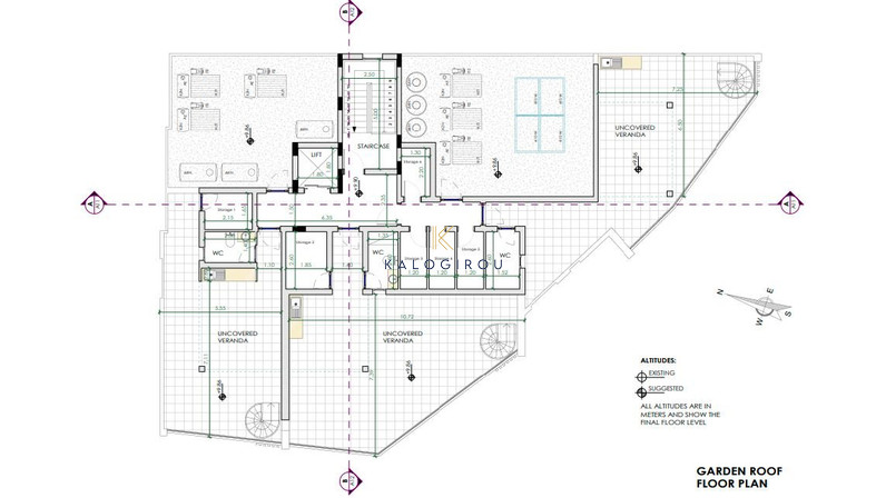 Top floor Apartment with roof garden for sale in Vergina area, Larnaca Town. The property is on the second floor and has internal covered area of 82 sq.m. It consists of an open plan kitchen, living room with dining area, 2 bedrooms, 2 en suite with shower and wc, 1 guest toilet, 66.6 sq.m. roof garden, 30.1 sq.m covered verandas, storage room and covered parking.