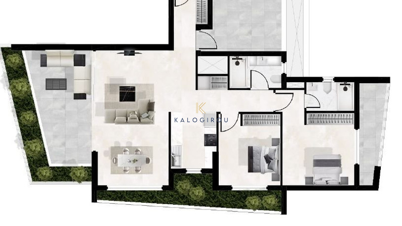 Apartment for sale in Larnaca, Makenzy area. The property consists of 2 bedrooms and it has the provision to add another one, an open plan kitchen and living room with seating area, 1 main bathroom and 1 en suite bathroom in the master bedroom. The apartment has 93 sq.m. of internal covered area and approximately 28 sq. m covered veranda. In addition, the property belongs provision for A/C, a storage room and covered parking at the ground floor.