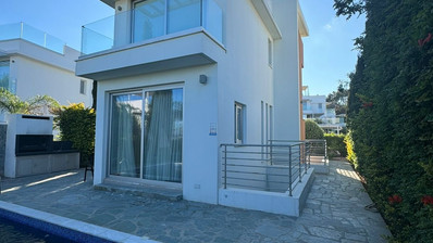 Villa for sale in Protaras area, Famagusta district. It is a two story house, furnished, with total internal covered area of 116 sqm. The ground floor consists of an open plan kitchen, living, dining area, a guest wc. The first floor consists of two bedrooms, a main bathroom with walk in shower and covered veranda. Both bedrooms have veranda access. Additionally, the house has a lovely roof garden with stunning panoramic and sea views and a basement. Externally, the property has swimming pool, garden, outdoor shower and parking space.