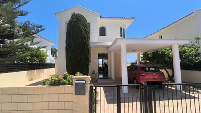 Villa for sale in Pervolia area, in Larnaca Town. The property is a fantastic two storey house with large outside spaces. It has internal covered area of 146 sq m. On the ground floor consists of living room and dining area, open plan kitchen, and a guest wc. On the first floor there are 3 bedrooms one of them en-suite, balconies to two bedrooms with sea view and a main bathroom.