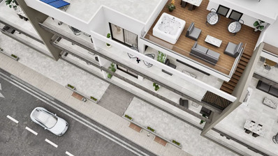 The project is situated in a residential neighborhood. The building comprised of three floors and comprised of 1 & 2 bedroom apartments. Top floor units enjoy private roof gardens, while all of them have exclusive right of use to a covered parking and storage room on the ground level.