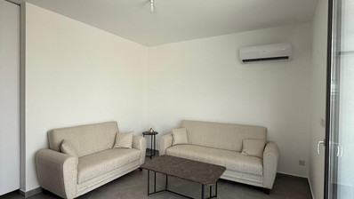 Apartment for rent in Larnaca, Port area. The property is fully furnished and consists of one bedroom, one shower, 2wc, open plan kitchen, living room, electrical appliances, A/C, and uncovered parking.