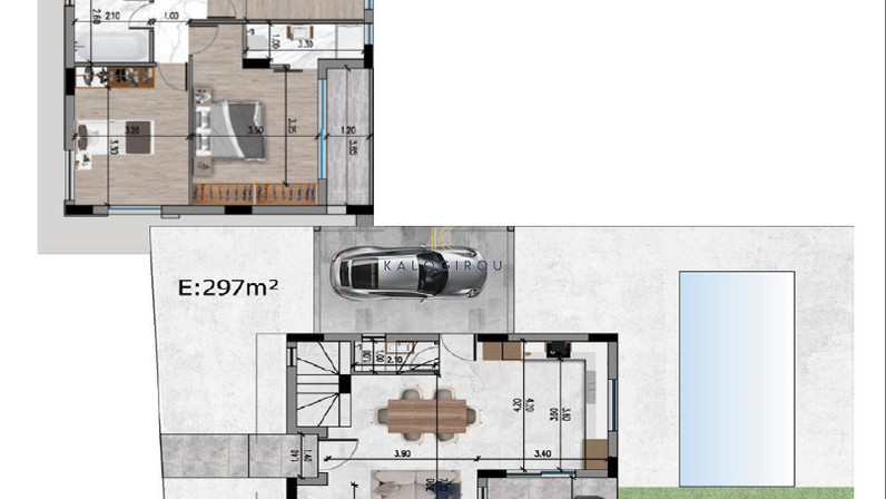 Double storey house for sale the village of Xylofagou. The ground floor consists of an open plan kitchen, living, dining area, guest wc. The upper floor consists of a main bathroom, 3 bedrooms, master bedroom is en suite (shower) and with veranda access. Externally the house enjoys covered veranda, big garden and covered parking. In addition, there is option for private swimming pool. Plot area is 297 sqm.