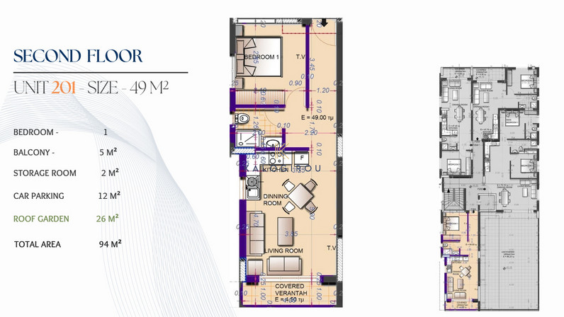 The project consists of 10 x one-, two- bedroom apartments. All apartments have private covered parking and storage room. Moreover, three top floor apartments enjoy private roof garden.