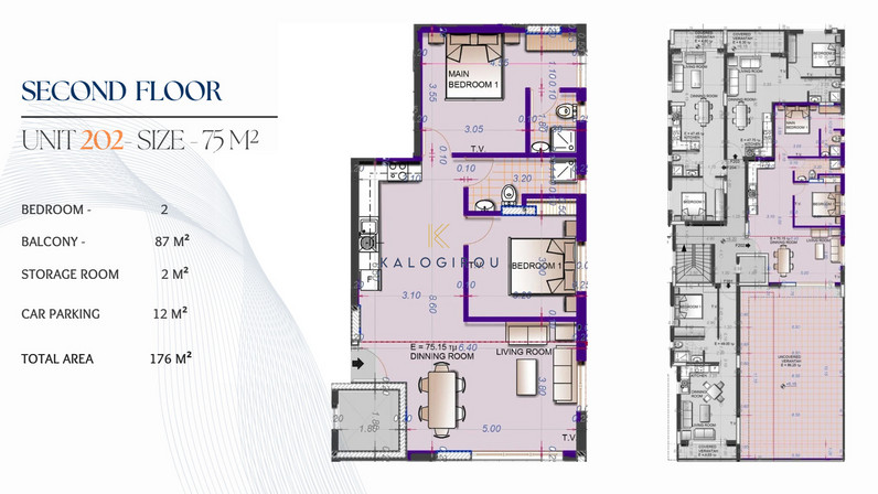 Second floor apartment for sale in Kiti area, Larnaca. It consists of an open plan kitchen, living, dining area, two bedrooms, en suite master bedroom, primary shower room and large uncovered veranda. Moreover, the apartment has also access to an allocated storage room and covered parking.