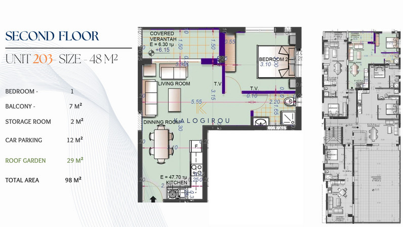 The project consists of 10 x one-, two- bedroom apartments. All apartments have private covered parking and storage room. Moreover, three top floor apartments enjoy private roof garden.