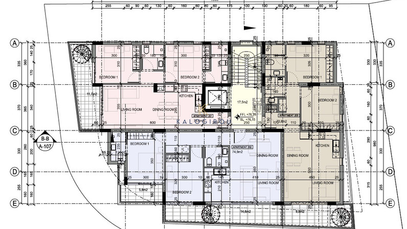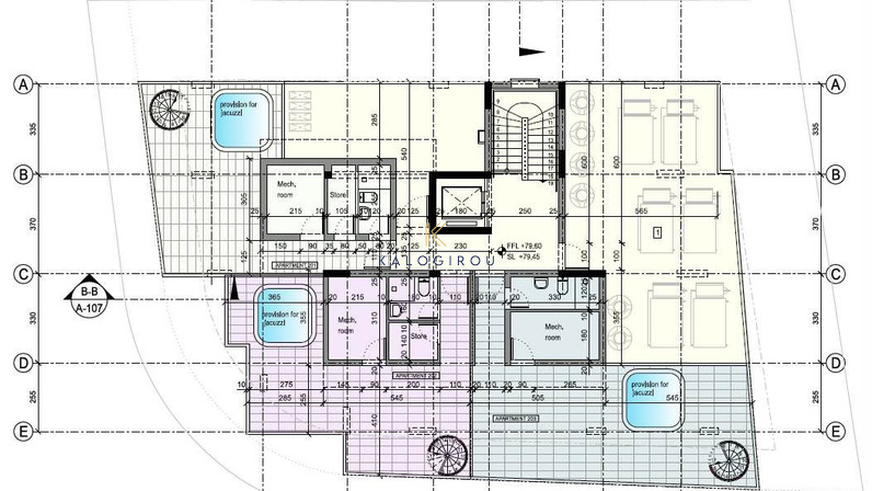 The project consists of six apartments, three on each floor. Each apartment includes two bedrooms, while the apartments on the second floor feature a roof garden. All apartments have a covered parking space and a storage room on the ground floor. The apartments offer a delightful view that combines both the mountains and the sea.