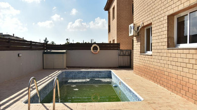 Two-story house for sale in Avgorou village, Famagusta district. The house was built around the year of 2010. The ground floor consists of an open plan kitchen, living, dining area, guest toilet and an en suite bedroom. The first floor consists of two bedrooms, a bathroom and a storage room. Outside it has a courtyard, covered parking, covered/uncovered verandas and a swimming pool. The internal area of the house is 116 sq.m., covered veranda is 15 sq.m. and uncovered veranda is 10 sq.m.