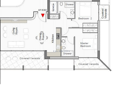 Apartment for sale in Kapparis area. The apartment is situated on the third floor and it consists of an open plan kitchen with living room and dining area, two bedrooms, en – suite shower with W/C in the master bedroom and one main shower with W/C.