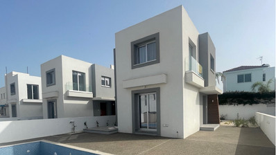 Detached, double story villa for sale in Agia Triada area, Famagusta district. The ground floor consists of an open plan kitchen- living-dining area and a guest toilet. The upper floor consists of three bedrooms-en suite master bedroom, and a family bathroom. Externally, the property benefits from private swimming pool, yard and uncovered parking space.