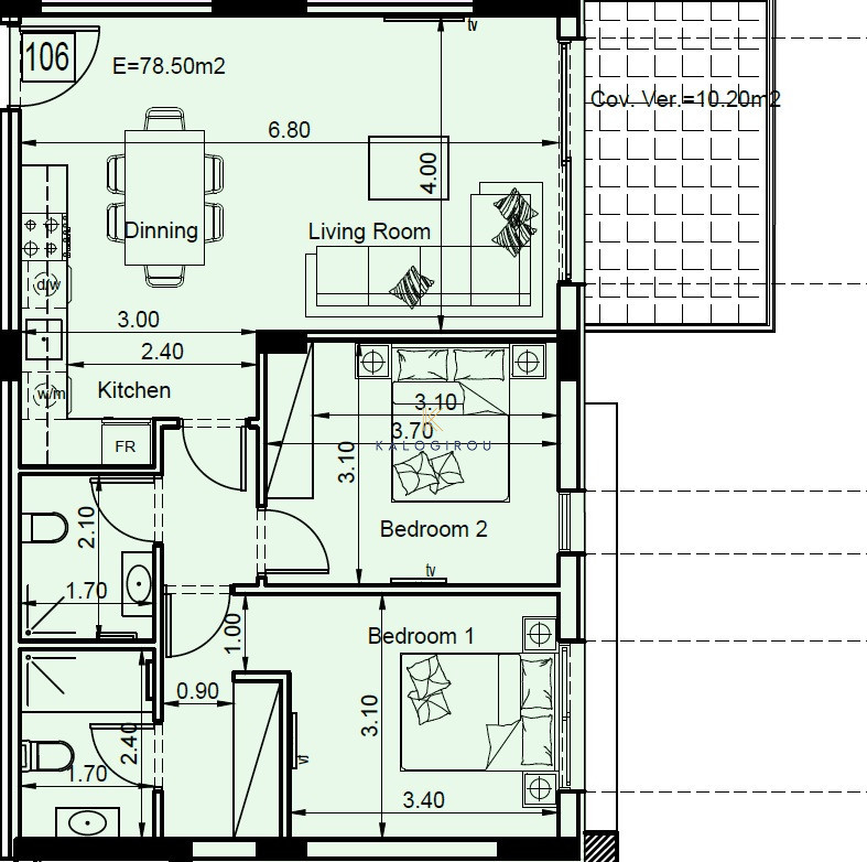 The property has 78.50 sq.m of internal covered area, 10sq.m of covered veranda. The property also benefits a covered parking space and a storage.
