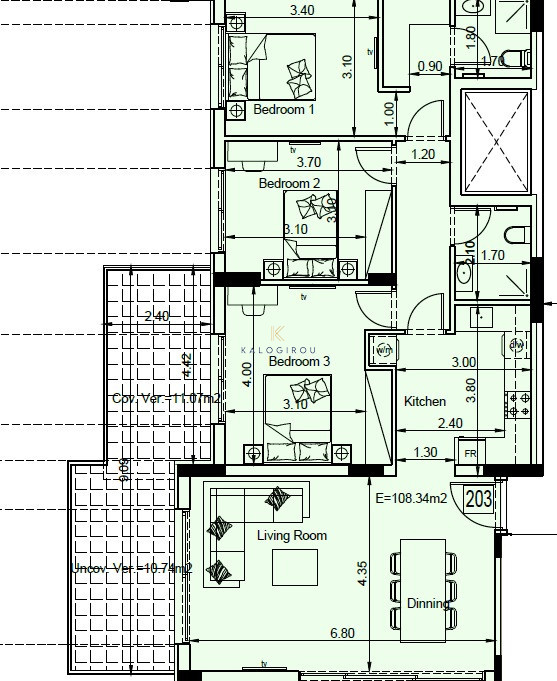 The property has approximately 108sq.m of internal covered area, approximately 29sq.m of covered veranda and 36sq.m of uncovered veranda. The property also benefits a covered parking space and a storage.