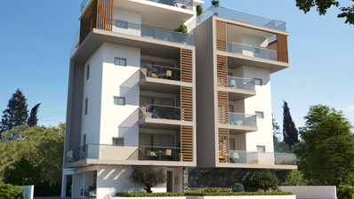 Apartment on the second floor for sale in Kamares area, Larnaca Town. It consists of open plan kitchen/living/dining area, guest wc, two en suite bedrooms and two covered verandas. In addition, the apartment has access to a covered parking and storage room.