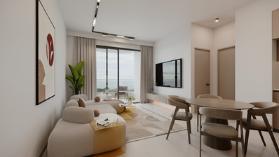 Apartment on the first floor for sale in Omonoia area. It consists of open plan kitchen, living and dining area, one bedroom, shower room and covered veranda. Moreover, the apartment has private access to a covered parking and storage.