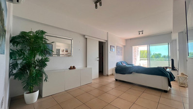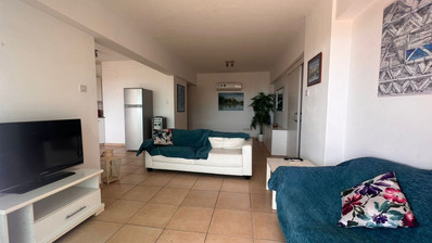 Apartment for sale in Larnaca, Makenzy area. The property consists of an open plan kitchen with living room, two bedrooms, guest toilet and a main shower with wc.