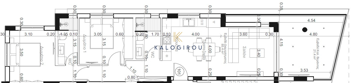 The property has approximately 85sq.m of internal covered area and 21sq.m of uncovered veranda. The apartment also benefits a covered parking space and storage at the ground floor.