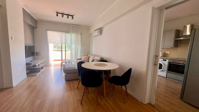 Apartment for sale in Larnaca, Makenzy area. The property consists of 2 bedrooms, separate kitchen, living room, 1 bath, 1 wc, uncovered parking, covered veranda, fully furnished, kitchen appliances, A/C.