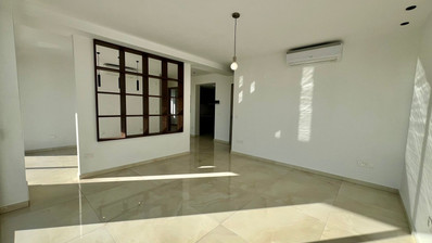 The apartment consists of two bedrooms, an open plan kitchen with living area, one guest WC, and two master bedrooms with en-suite shower. It also features a huge balcony with panoramic views, offering an excellent outdoor space to enjoy the city skyline. It is offered for rent with all electrical appliances and air conditioning units in all areas (unfurnished).
