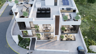 The project is a three- storey residential building boasting 4 one & two bedroom apartments. More specific there are two apartments on the first floor, one on the second floor and a penthouse garden on the third floor. The penthouse enjoys private roof garden while all apartments have allocated covered parking and storage room.