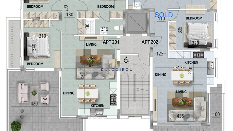 Apartment for sale in Kamares area, Larnaca. The apartment consists of open plan kitchen, living and dining area, a main bathroom, 3 bedrooms, master bedroom is en suite with shower and wc and covered veranda. Internal covered area of the flat is 97 sq.m and covered veranda is 27 sq.m. In addition, the property has an exclusive right of use of one covered parking and a storage room on the ground floor.