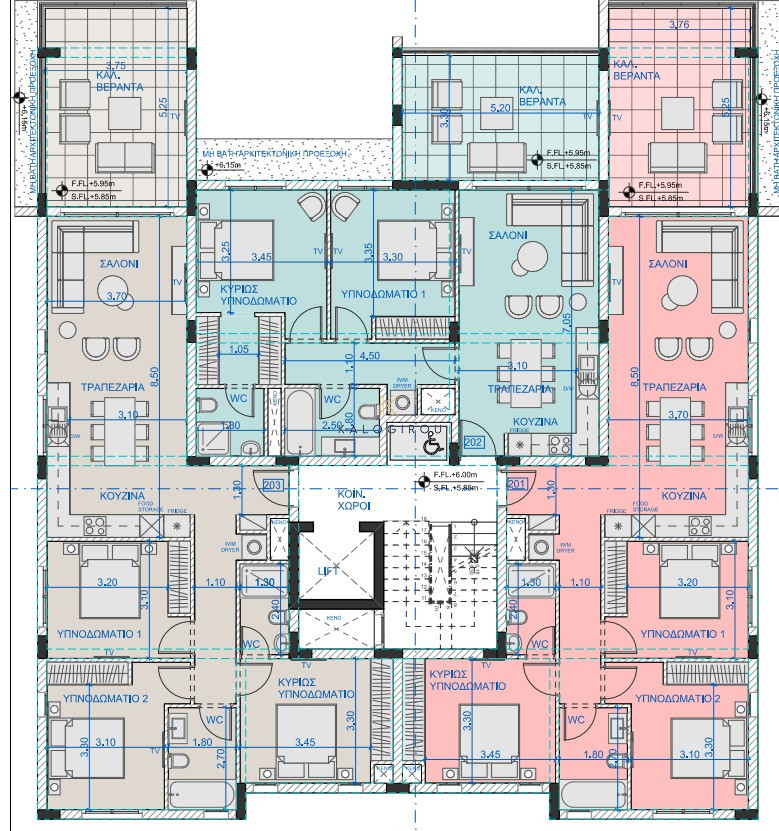 Apartment for sale in Aradippou area, Larnaca Town. The property consists of an open plan kitchen, living room, three bedrooms, the master bedroom has en suite shower with wc and one main bathroom, Internal covered area of the flat is 101 sq.m, covered veranda is 22 sq.m. In addition, the property has an exclusive right of use of one covered parking and a storage room on the ground floor.