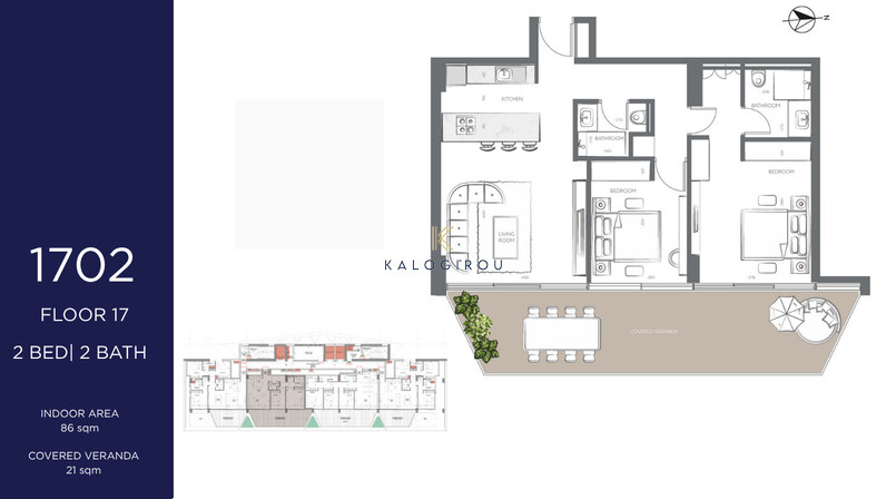 Apartment for sale in New Marina- Port Area Larnaca. It is situated on the 17th floor. The flat consists of an open plan kitchen-living-dining area, two bedrooms-one of them en suite, main bathroom and sea view covered veranda. Moreover, the apartment has allocated covered parking.