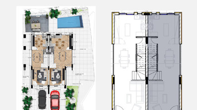The property is a part of a modern complex of 10 houses in the new developing and fast growing area in Livadia. This project is comprising double story semi-detached houses with unique interior design featuring 3 bedrooms, 2 bathrooms, guest toilet, verandas with beautiful view of the neighborhood, private gardens and parking spaces. Al the houses have a modern open plan layout with custom made kitchen, fitted wardrobes, large double glazing windows, marble looking porcelain flooring and more.