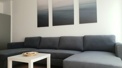 The apartment consists of two floors, offering a practical layout combined with comfort and style. Upon entering, you are greeted by a bright and welcoming living area.