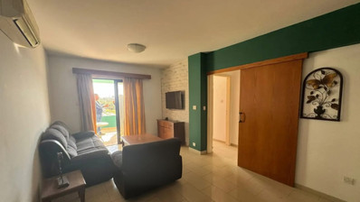 Apartment for sale in Makenzy area, Larnaca. The property is located in Makenzy consists of an open plan kitchen, a living room with a dining room, a kitchen with all the kitchen appliances, two bedrooms and a main bathroom with a toilet.