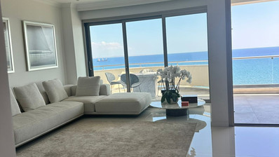 Super luxury apartment for sale in Phoinikoudes beach. Situated on the 8th floor, this fully renovated and luxury-designed residence offers unobstructed panoramic sea views and an unparalleled living experience just steps away from the beach and all amenities.