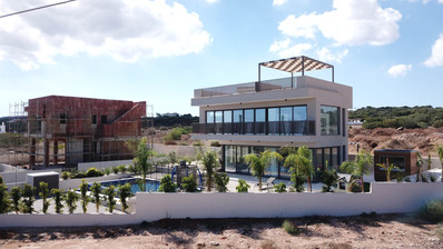 The project is an exclusive luxury development featuring two energy-efficient villas, perfectly situated in the picturesque countryside above Protaras. These meticulously crafted residences blend contemporary luxury with sustainable design, offering unparalleled views of the shimmering Mediterranean Sea and the serene natural surroundings.