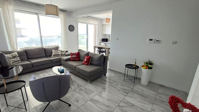 Apartment for sale in Larnaca, Makenzy area. The property consists of 3 bedrooms, open plan kitchen, living room, 1 family bathroom and w.c, an en-suite shower at the master bedroom, big covered veranda with amazing sea view and views of the pool, covered parking and storage.