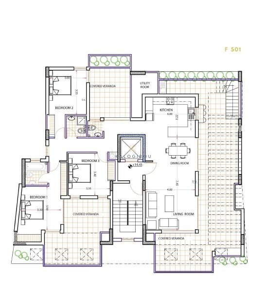 At the fifth floor, there is a penthouse apartment which consists of three bedrooms, one main bathroom with W/C, one en- suite shower with W/C in the master bedroom and one guest toilet. It has 122sq.m of internal covered area, 34sq.m of covered veranda, 55sq.m of specious private roof garden and storage room.