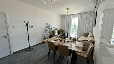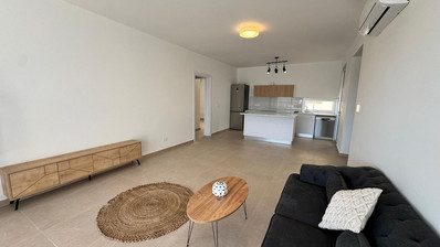 Apartment for rent in Makenzy area, Larnaca. The apartment offers an internal covered area of 76 sq.m and consists of open plan kitchen, living and dining area, 1 main shower with 1 WC, 1 gest toilet with bath and 2 cozy bedrooms.