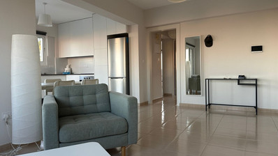 Apartment for Rent in Livadia area. The property consists of an open plan kitchen and living room with dining area, one bedroom , a family bathroom with shower, a laundry area, and large covered veranda.