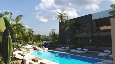 The apartment is a part of a complex of two residential blocks. Each block boast 12 x 1-, 2-, 3-bedroom apartments. The complex enjoys common swimming pool.