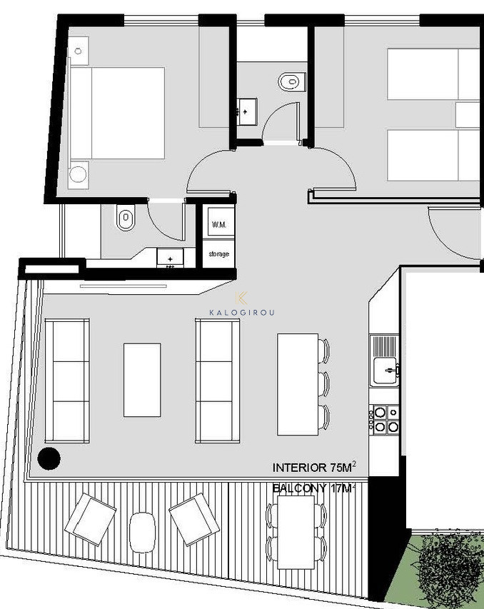 Lovely Apartment for sale in Faneromeni area Larnaca. The apartment is situated at the second floor and it consists of an open plan kitchen with living room, two bedrooms, one main shower with W/C and one en – suite shower with W/C. The apartment has 74sq.m of internal covered area and 17sq.m of covered veranda.