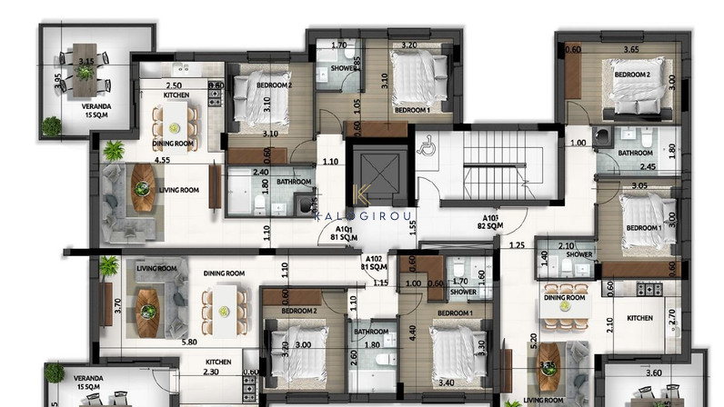 Apartment for sale in New Mall area, Larnaca Town. The apartment is situated on the first floor and has internal covered area of 81 sqm. It consists of an open plan kitchen with dining area, living room, a main bathroom, 2 bedrooms, master bedroom is en suite shower and wc and covered veranda of 15 sqm. The apartment has exclusive right of use of a private covered parking space on the ground floor.